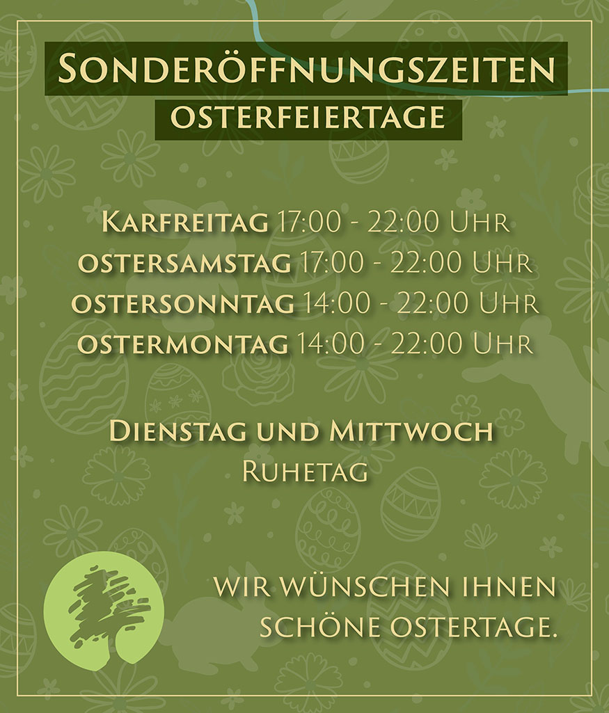 An Sonn- und Feiertagen schließt die Küche 1 Stunde vorher.